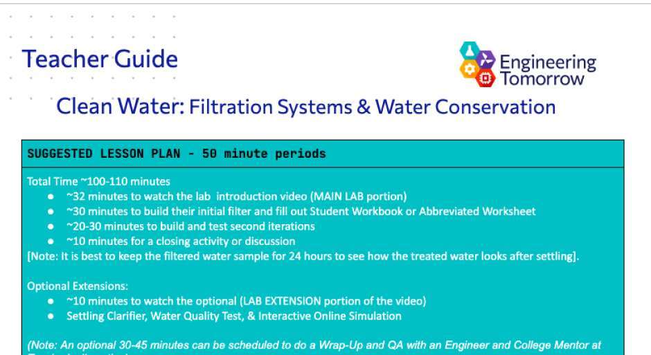 Get access to all of the presentation materials, workbooks and resources to run the Clean Water lab in your classroom.