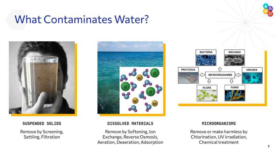 - Analyze a water sample before and after it undergoes a water filtration process